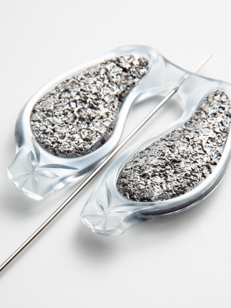 Bent out of shape with lenses of aluminium, and thus rendered useless as a tool for clearer sight, these spectacles are marked by absurd distortion right between the eyes; a futuristic immaterial mentality which blinds us to the material damage from the rampant consumerism and desire to see and own the new. The open cell structure of the aluminium distorts and symbolizes the white noise, anxiety, anticipation, and friction, but does not totally inhibit sight, while a spectacle frame worn on the body as jewellery questions our relationship objects while pushing limits of the world’s resources.